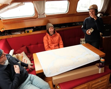 Jolly has a capacity for 6 guests + 1 guide. The guests are assigned to one of three cabins on Jolly, ideally sharing with their travel companions or with another guest of the same gender. Read more about our beautiful Jolly HERE