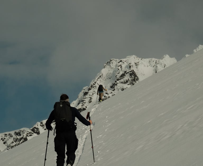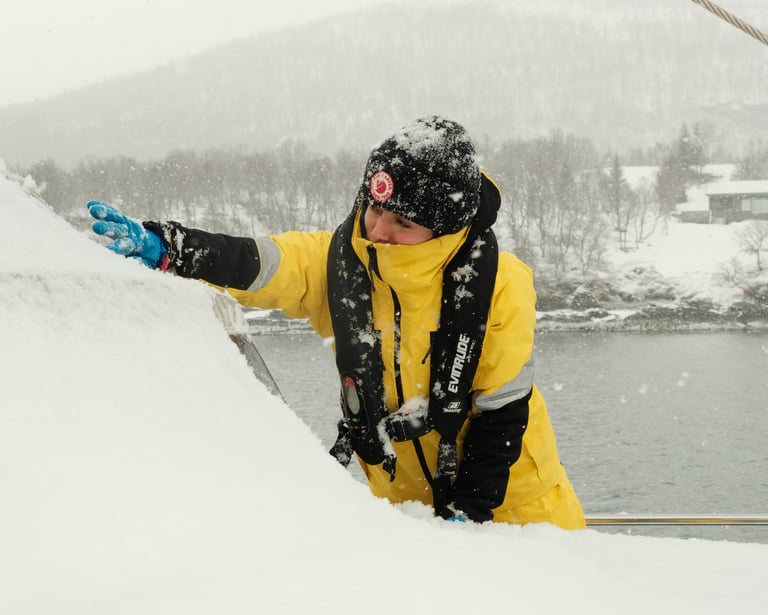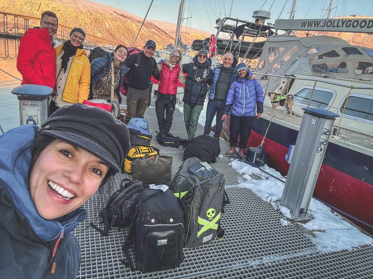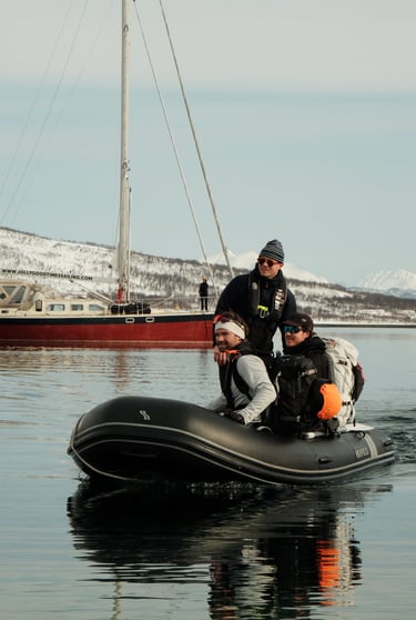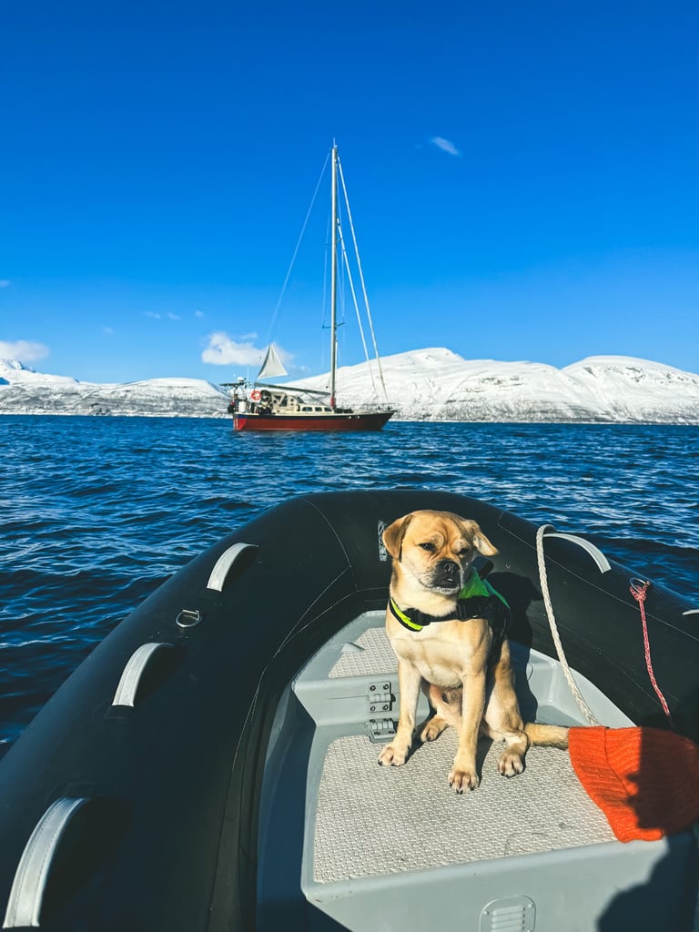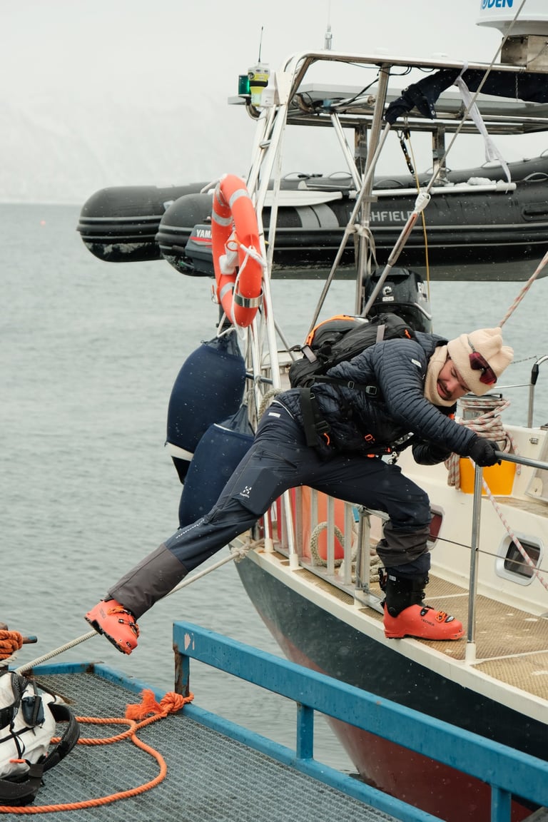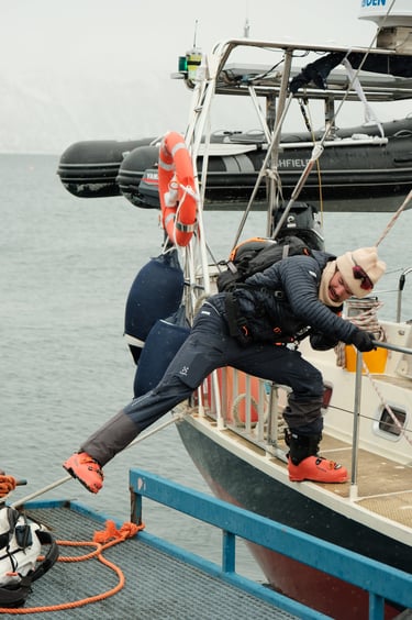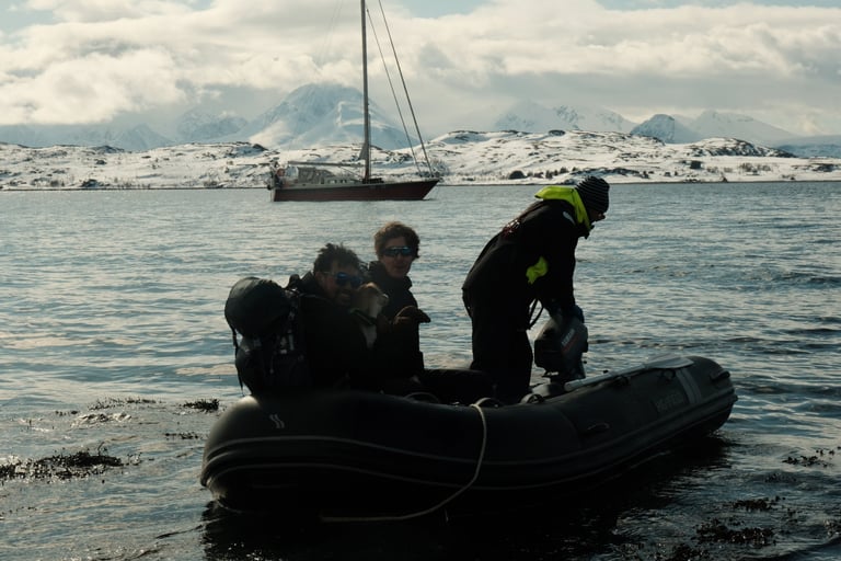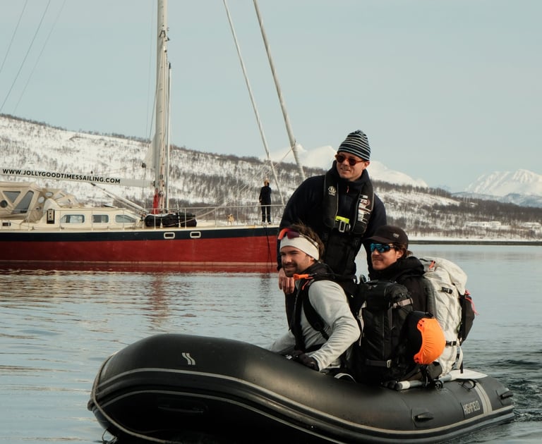 Welcome to Maria, Ulrik & Ramoncito’s ski and sail trip in Norway! For 7 days, between March and May 2026, you'll experience the thrill of skiing in some of the most stunning terrain in the world: The Lyngen alps and Alta fjords. Tag along and start enjoying the luxury of a fully guided trip with all-inclusive aboard our fantastic red sailing vessel, Jolly.